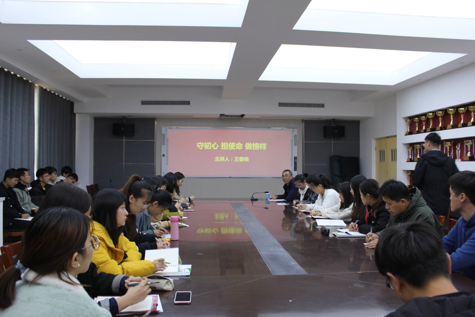 11月9日,aa3044永利集团党委副书记王春晓以《守初心、担使命、做榜样》为题,向全体学生党员及第25期入党积极分子讲“不忘初心、牢记使命”主题教育专题党课。
