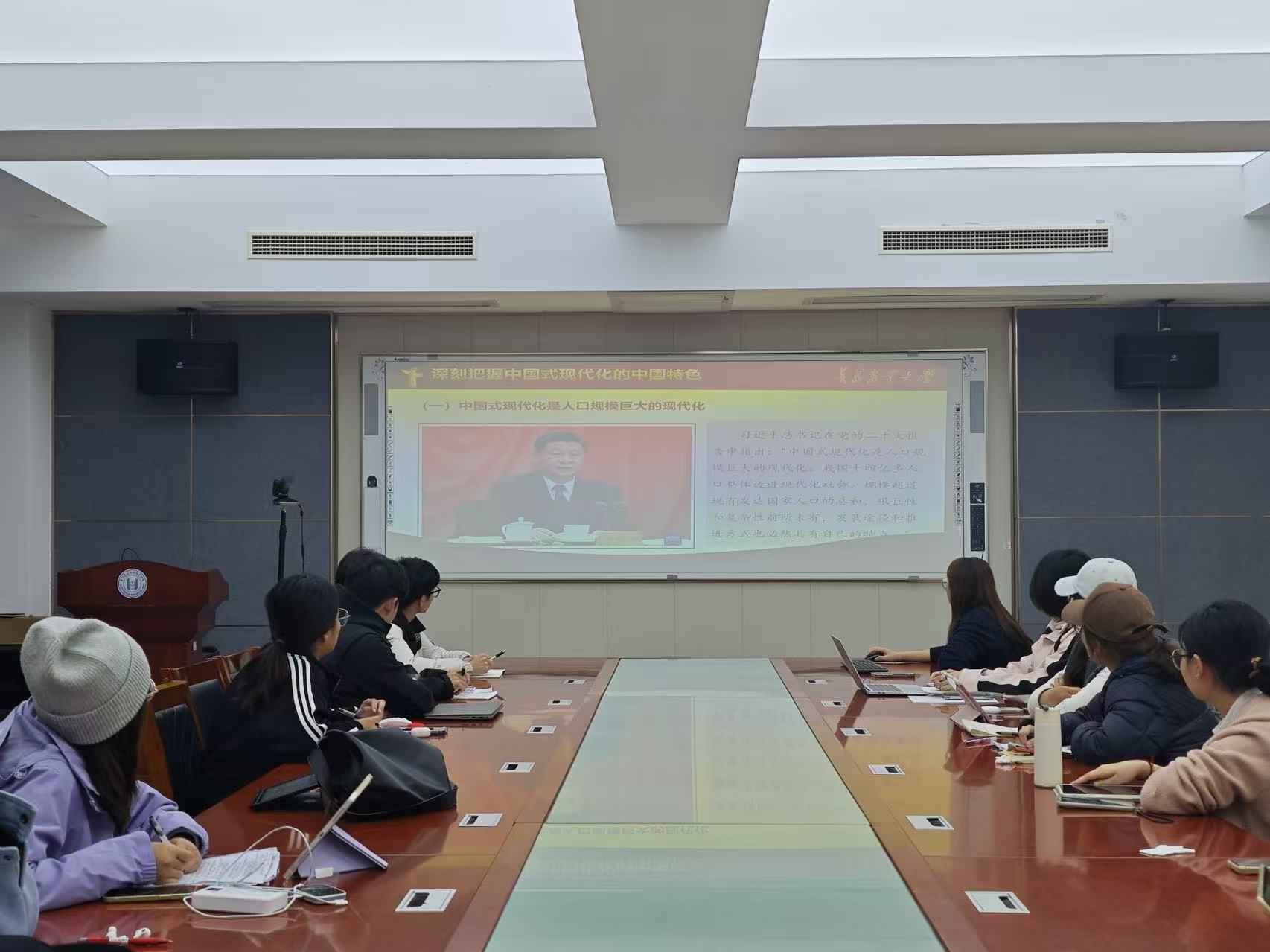 10月30日晚,aa3044永利集团辅导员刘园在生物楼N306会议室为党员发展对象讲授“深刻理解中国式现代化的科学内涵”主题党课。刘园围绕中国式现代化是实现中华民族伟大复兴的光明大道、深刻把握中国式现代化的中国特色以及牢牢把握中国式现代化的本质要求三个部分,系统阐述了中国式现代化的丰富内涵与重大意义,深入剖析了中国式现代化在经济发展、社会进步、生态文明等多方面的独特优势。她鼓励学生要深刻领会中国式现代化的本质要求,积极投身到国家现代化建设的伟大实践中去,为实现中华民族伟大复兴贡献自己的力量。
