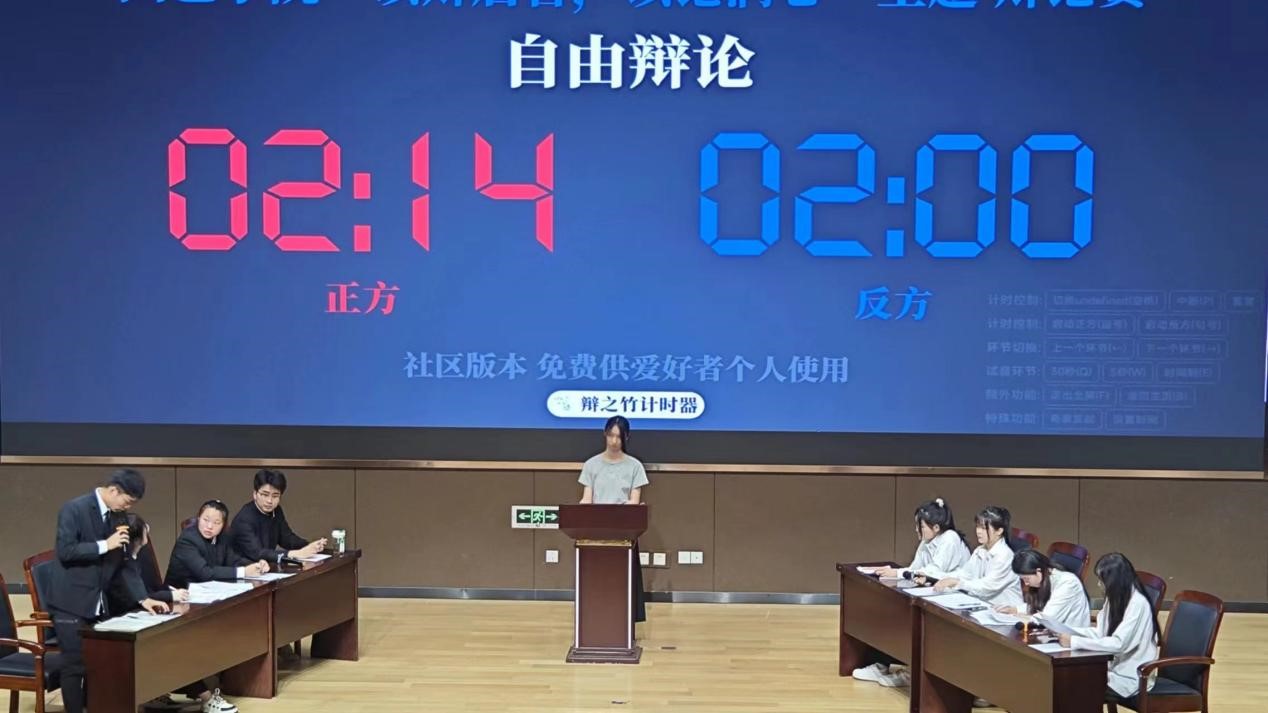 本场比赛按照“重在参与,公平竞赛”的原则,采取四对四团体辩论,以省辩经典赛制作为流程要求,辩题为:“躺平是当代青年的毒药还是解药”。比赛中双方辩手才思敏捷、语若利剑,不仅展现了个人出众的语言表达能力与思维逻辑能力,更展示了团队紧密合作的精神,为观众带来了精彩而激烈的辩论。评委围绕辩题剖析、辩论技巧、场上仪态等方面进行了细致深入的指导点评。