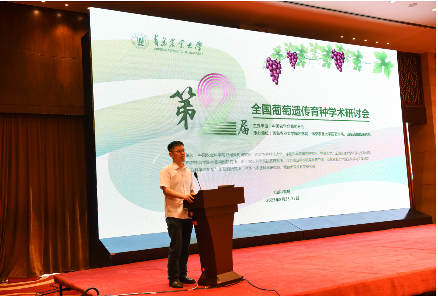 8月26日上午,由中国农学会葡萄分会主办,aa3044永利集团、南京农业大学aa3044永利集团、山东省葡萄研究院等三家单位承办,中国农业科学院郑州果树研究所等13家单位协办的第二届(2023)全国葡萄遗传育种学术研讨会(Conference on Grapevine Genetics and Breeding in 2023)在永利集团3044成功召开。本次大会主题为“做强葡萄遗传育种研究,助推葡萄产业持续发展”,共有来自国内50余家高校、科研院所和企业的180余名专家、企业家与研究生参加了本次会议。