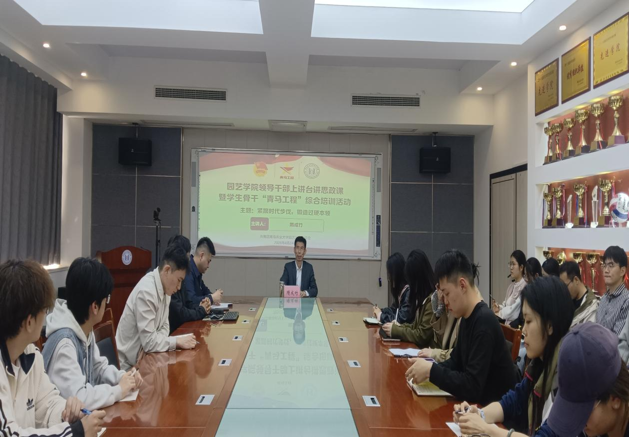 4月24日,aa3044永利集团于生物楼N306会议室开展2026年春季学期领导干部上讲台讲思政课暨学生骨干“青马工程”综合培训活动。学院党委书记隋成竹以《紧跟时代步伐,锻造过硬本领》为题,与到会学生骨干进行交流。活动由学院辅导员赵健主持。