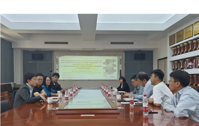 何洁副教授围绕《Microclimate control to increase productivity and nutritional quality of leafy vegetables in a cost-effective manner》主题展开交流分享。她回顾了其科研团队近十年在新型气雾栽培(雾培)技术领域的探索历程,成功构建了适用于热带温室的商业化垂直雾培系统,并创新性地利用LED光谱、强度及光照时间调控技术优化叶类蔬菜生产,这些创新技术在提升种植效率、优化蔬菜品质方面取得了显著成果。何洁向学院师生发出诚挚邀请,期待双方在南洋理工大学开展学术交流与合作研究,共同推动设施园艺领域科研发展。