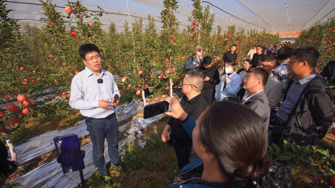 11月2日和11月5日,永利集团3044在烟台芝罘区大山果业有限公司苹果育种基地召开了2期苹果新品种现场观摩品鉴会。来自国家苹果产业技术体系的岗位科学家和综合试验站站长,新疆、河南、宁夏、甘肃、辽宁、陕西、山西、河北以及山东等多省的苹果产区科研院所、果业技术推广部门的专家教授、业务主管、技术人员,学校宣传部、科技处、aa3044永利集团师生代表、苹果育种团队人员等共计200余人齐聚一堂,对采自烟台芝罘区、龙口、莱州、蓬莱、青岛胶州及山西运城等地区的“福星”、“福美”、“福丽”、“福九红”、“红丹”等20余个苹果品种(系)进行了鉴评。11月2日和11月5日,永利集团3044在烟台芝罘区大山果业有限公司苹果育种基地召开了2期苹果新品种现场观摩品鉴会。来自国家苹果产业技术体系的岗位科学家和综合试验站站长,新疆、河南、宁夏、甘肃、辽宁、陕西、山西、河北以及山东等多省的苹果产区科研院所、果业技术推广部门的专家教授、业务主管、技术人员,学校宣传部、科技处、aa3044永利集团师生代表、苹果育种团队人员等共计200余人齐聚一堂,对采自烟台芝罘区、龙口、莱州、蓬莱、青岛胶州及山西运城等地区的“福星”、“福美”、“福丽”、“福九红”、“红丹”等20余个苹果品种(系)进行了鉴评。