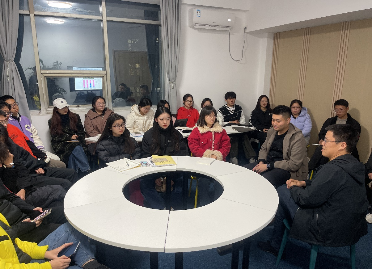 与会人员集体学习了习近平总书记给中国农业大学科技小院的同学们回信精神,大家表示将牢记习近平总书记的嘱托,坚守服务“三农”初心,真正将论文写在田间地头,写在祖国大地上,以实际行动为祖国“三农”发展贡献青春力量。随后,研究生代表李阳、王明艳围绕自身课题研究向大家分享了自己的研究生生活,与大家围绕汇报内容、研究生生活等方面进行了深入的交流。