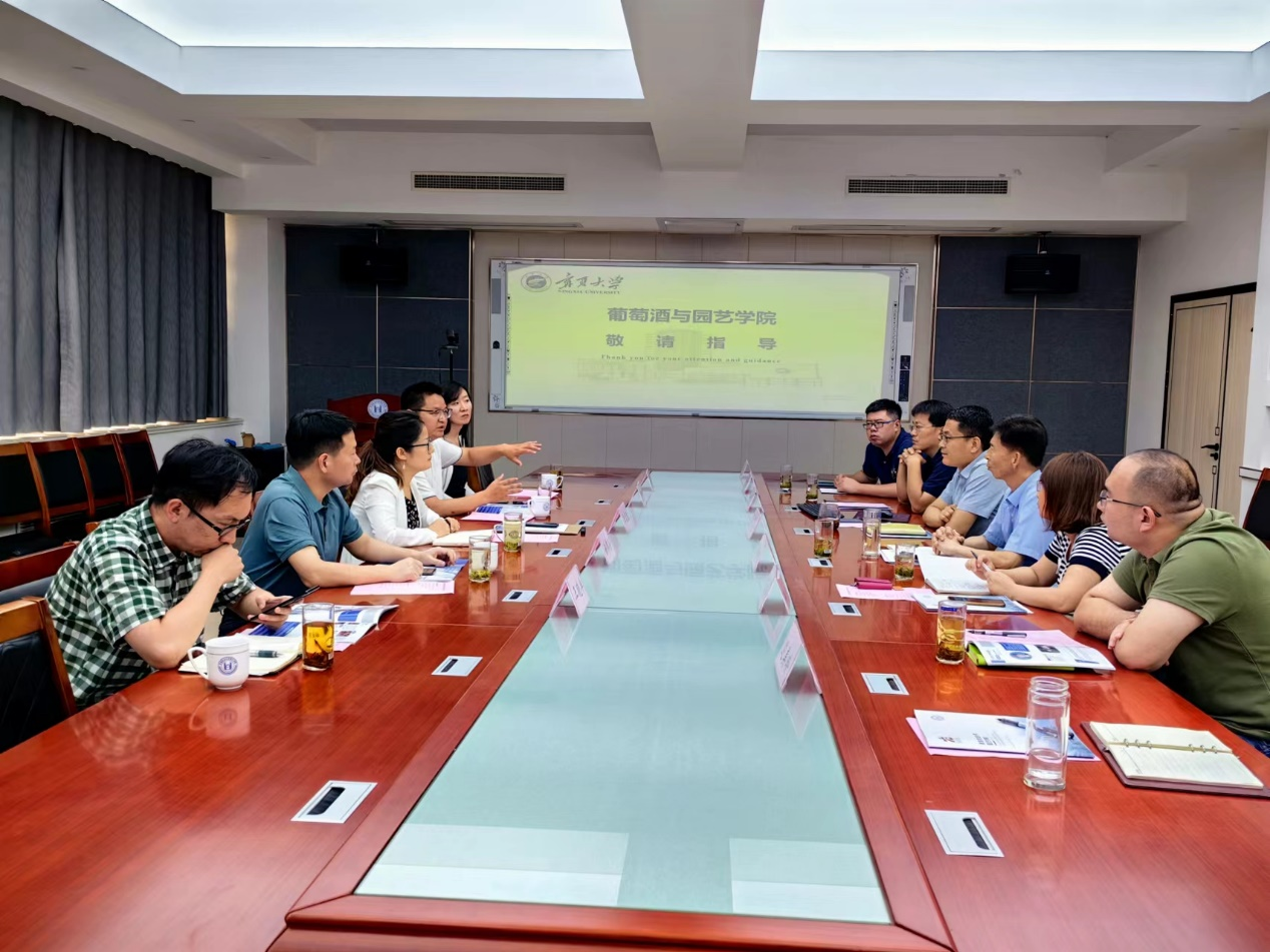 8月11日,宁夏大学葡萄酒与aa3044永利集团副院长(主持工作)张雪艳一行5人到访aa3044永利集团。aa3044永利集团党委书记隋成竹,副院长张新富,部分系主任、学科负责人和相关团队教师等参加调研交流,双方围绕学生培养、科学研究、学科建设等内容进行了座谈。