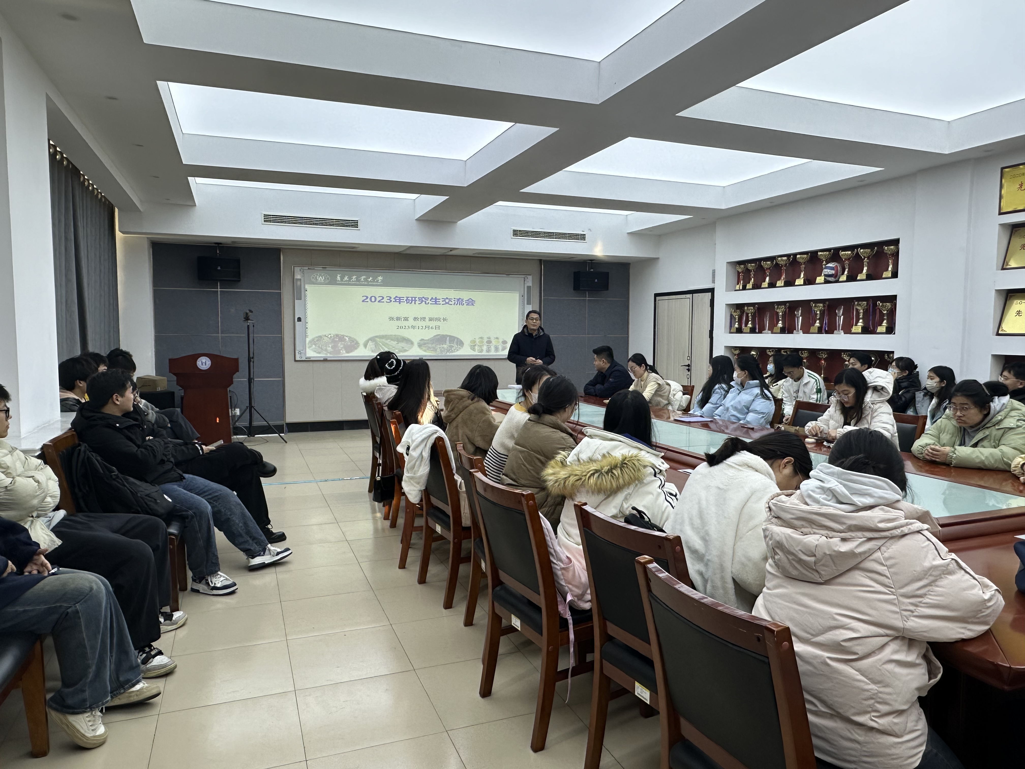 为引导学生明院情,知院史,厚植学生爱校爱院情怀,养成良好的学习和科研习惯。12月6日下午,aa3044永利集团在生物楼N306召开研究生交流会,会议由辅导员赵健主持,aa3044永利集团副院长张新富、实验中心主任刘晓丽、2023级研究生参会。