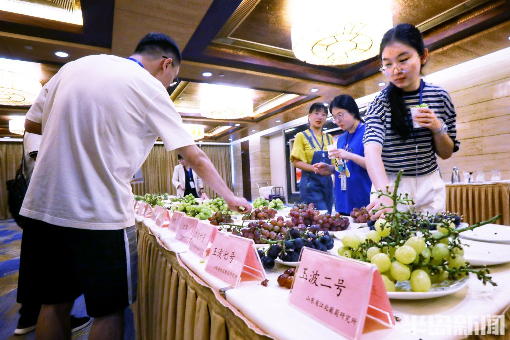 在这其中有5个品种来自青岛本地,它们是平度大泽山江北葡萄研究所选育的具有浓郁的玫瑰香味的玉波二号、玉波七号、玉波十号,和具有奶油香味玉翡、玉翠,美味的新感受让现场不少专家都竖起了大拇指。同时其他省市相关机构带来的葡萄成果都各具特色,外观口感甜度俱佳,比如张家港市神园葡萄选育的“园苹果”具有明显的苹果香味,给现场的品尝者带来了不一样的感受。