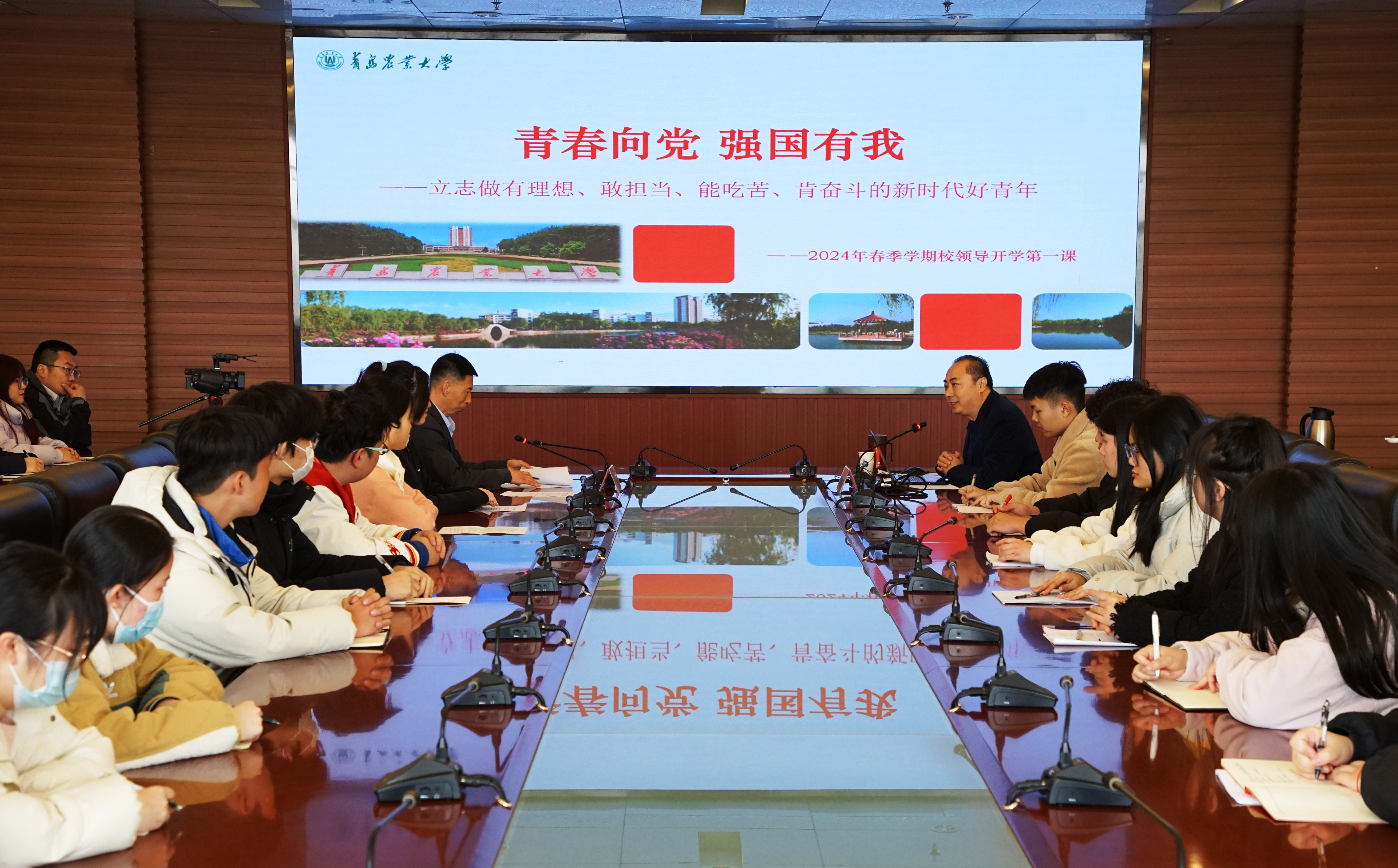 为深入学习宣传贯彻党的二十大精神,引导广大学生学习领会习近平新时代中国特色社会主义思想,3月18日,校长刘新民于图书馆三楼会议室为aa3044永利集团园艺(创新)2001班全体学生,园艺(创新)2101、园艺(创新)2201班学生代表讲授2024年春季学期“开学第一课”。活动由学院党委书记隋成竹主持。